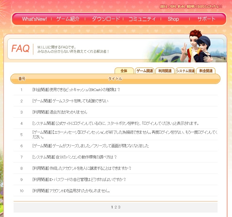 | 3040 | miluトークにログイン出来ない[3] | ぼろ | 2013/07/10 | 1,639 | 23 | |||||||||||||||
