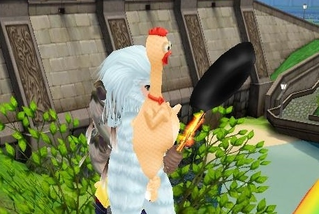 目の前のフライパンにビビるチキンちゃん((((;゚Д゚))))