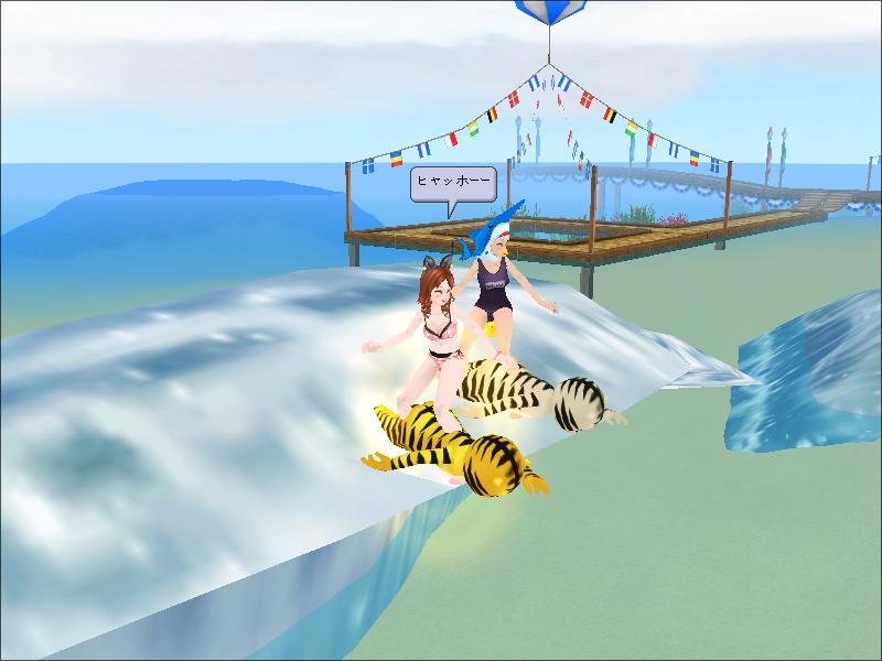 浮き輪して 波乗り~~