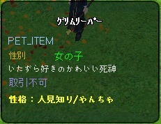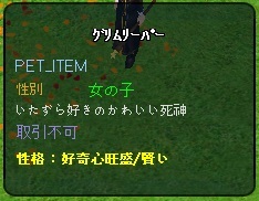 | 22410 | [売る]【終了】pet グリムリーパー♀[1] | 南蛮漬 | 2016/11/28 | 2,372 | 20 | |||||||||||||||