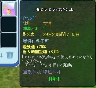 | 24881 | [売る]<終了>☆デビルローズランジェリー | ソルブリッド | 2019/04/15 | 3,775 | 35 | |||||||||||||||