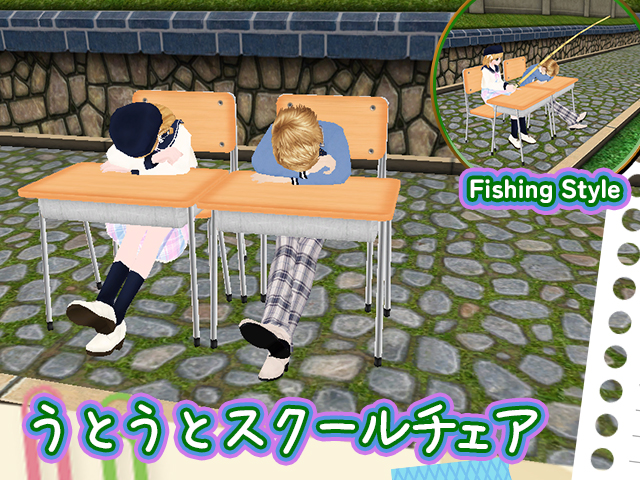 デザイン上、釣り待機時に竿や手が椅子アイテムと干渉する事を予めご了承ください。