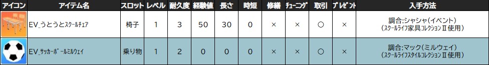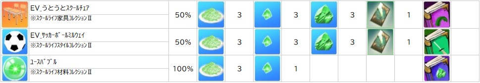 ※「 スクールライフ材料コレクション 」「 スクールライフスタイルコレクション 」「 スクールライフ家具コレクション 」は調合に使用できなくなります。
