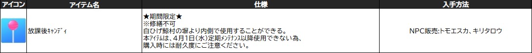 ※採集道具の「 放課後キャンディ 」の使用用途はなくなります。
