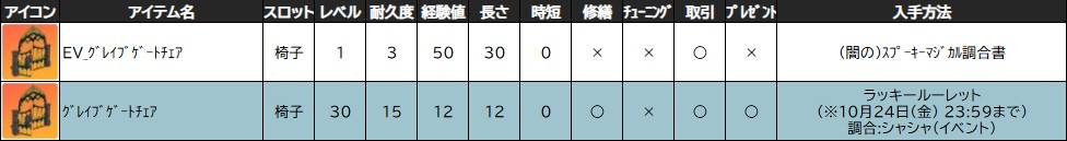 イベントマジカル調合書などから「 (EV_)グレイブゲートチェア 」を(σ・∀・)σゲッツ!!