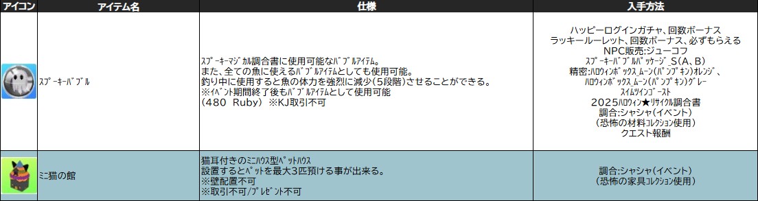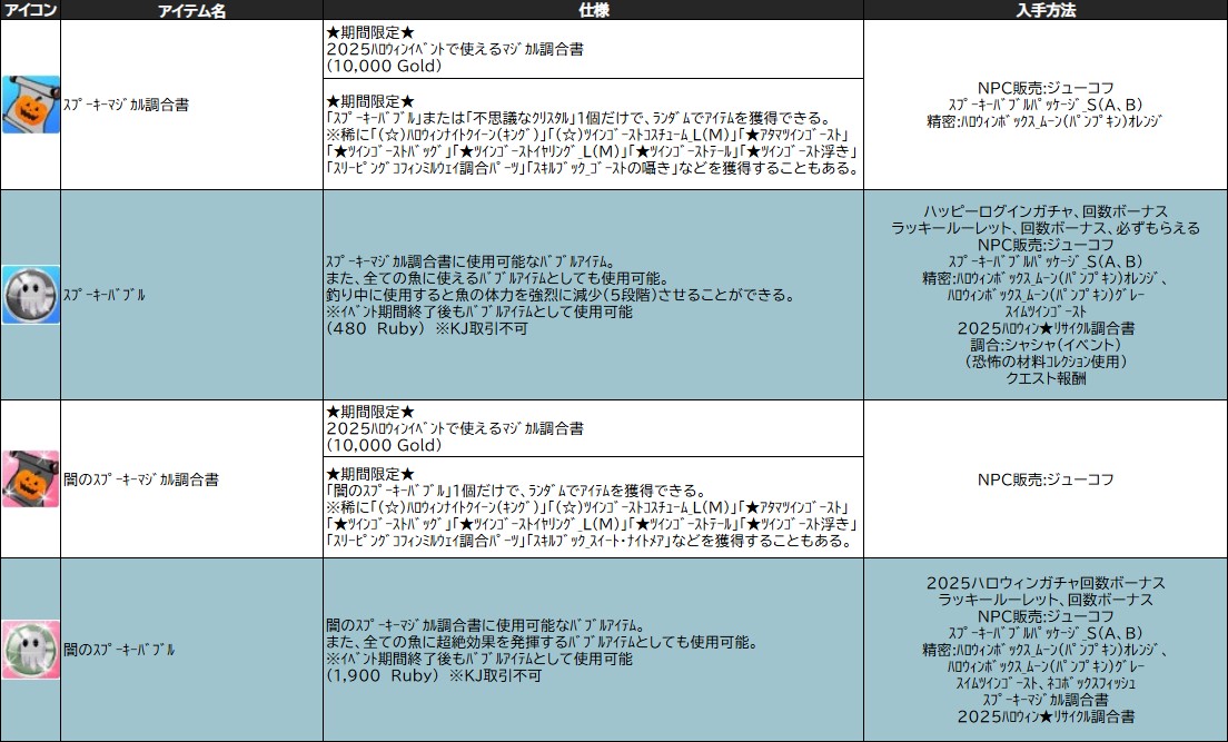 ※「 スプーキーマジカル調合書 」「 闇のスプーキーマジカル調合書 」「 2025ハロウィン★リサイクル調合書 」の使用用途はなくなります。