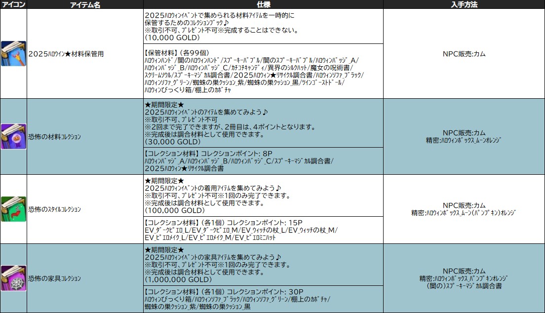 ※2025ハロウイン★材料保管用は材料を保存する為のコレクションブックとなっております。 ※完成したコレクションブックは、調合に使用可能のため、削除・販売される際はご注意ください。