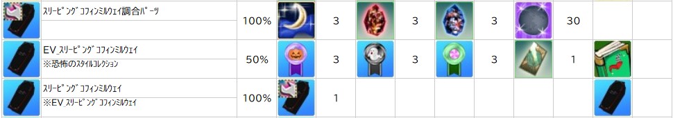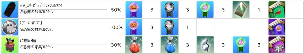 ※「 恐怖の材料コレクション 」「 恐怖のスタイルコレクション 」「 恐怖の家具コレクション 」は調合に使用できなくなります。