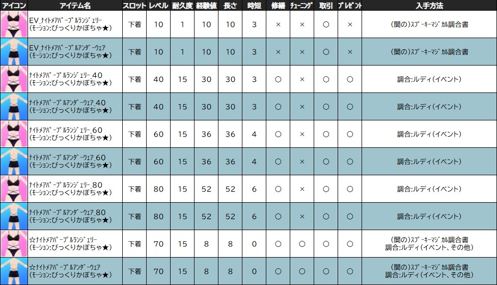 「☆ナイトメアパープルランジェリー(アンダーウェア)」は、時短チューニング可能(ノ・ω・)ノオオオォォォ-