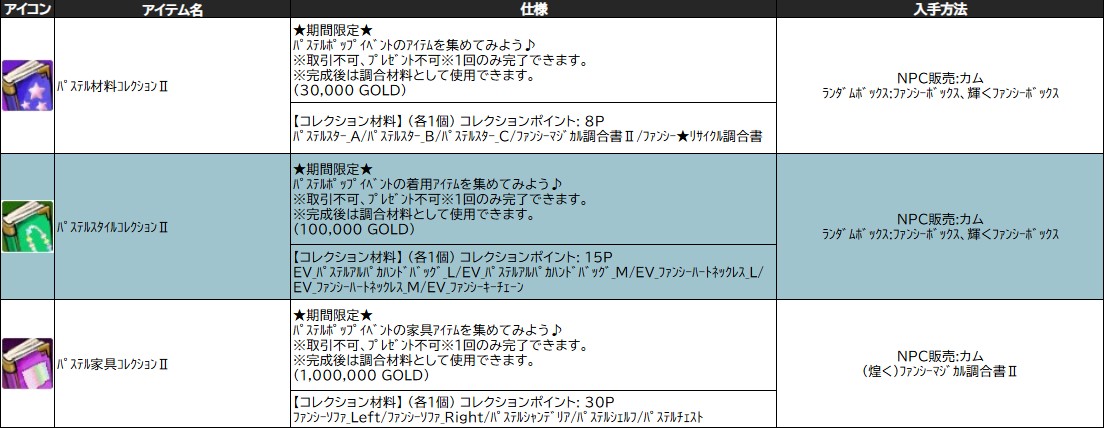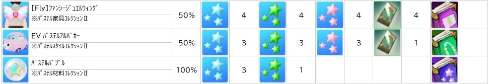 ※「 パステル材料コレクションⅡ 」「 パステルスタイルコレクションⅡ 」「 パステル家具コレクションⅡ 」は調合に使用できなくなります。