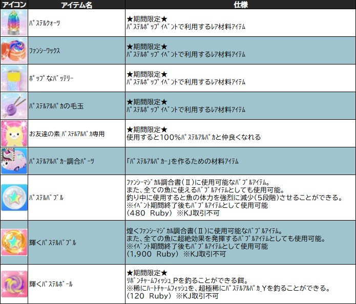 「 パステルバブル 」は、パステルポップイベントのマジカル調合に使用できるアイテムとなっております♪